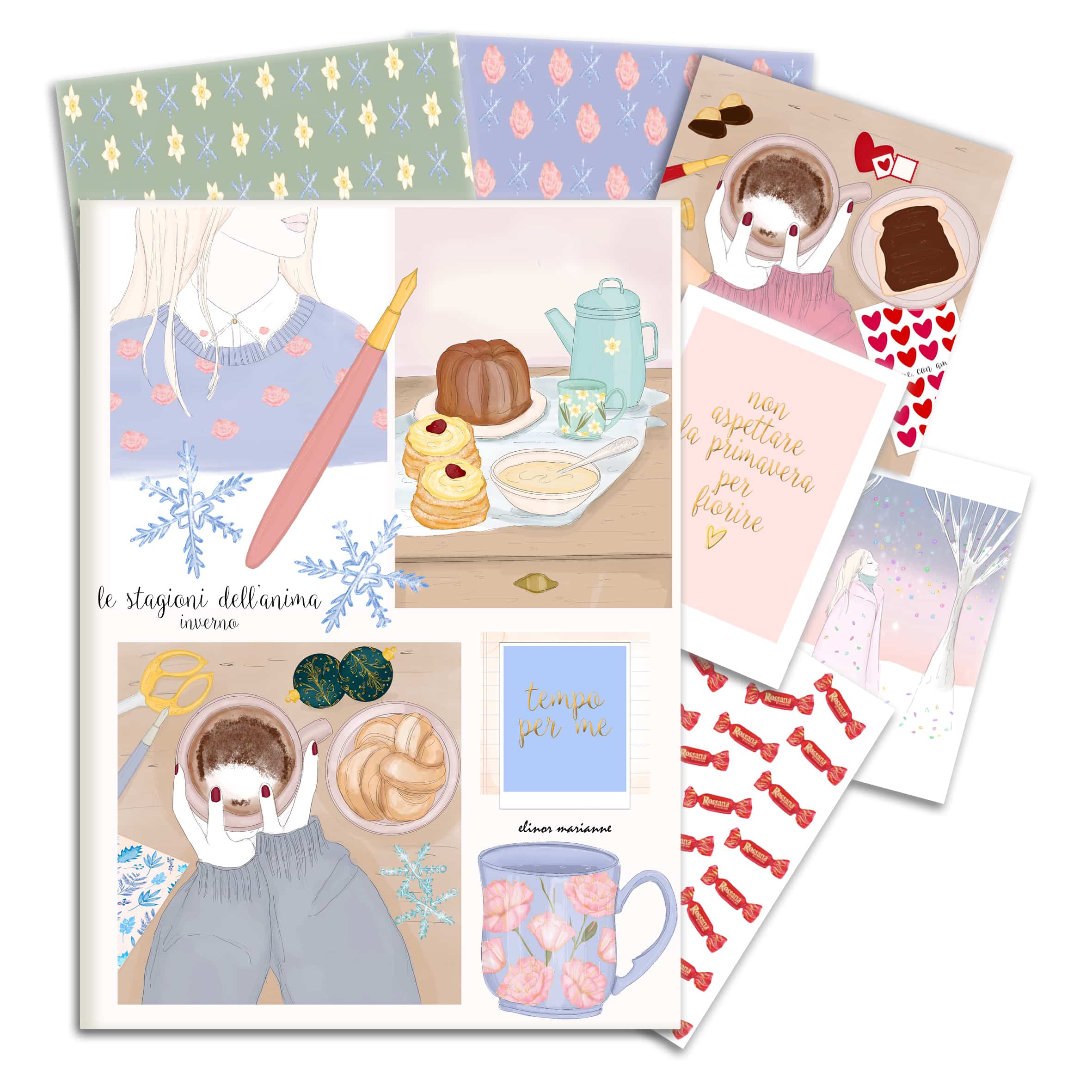 Un book creativo dedicato all’inverno, al suo incanto, ai suoi colori brillanti come cristalli di neve al sole. Alla sua energia mutevole, introspettiva e giocosa; alle sue richieste gentili di tempo, lentezza, tazze calde e maglioni, di cura.