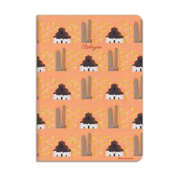 Un quaderno dedicato a Bologna, ai suo simboli: la basilica di San Petronio, le due torri e i tortellini.