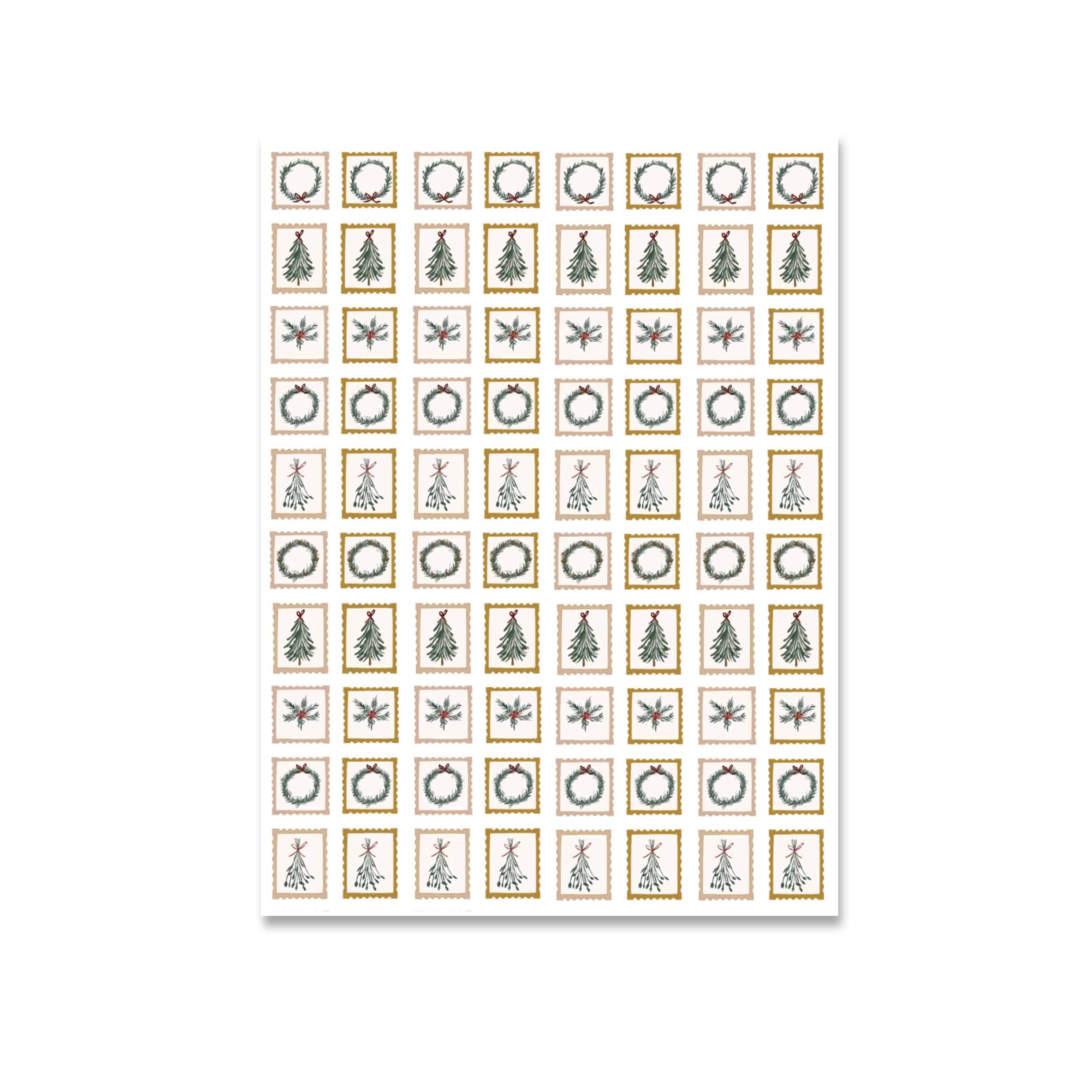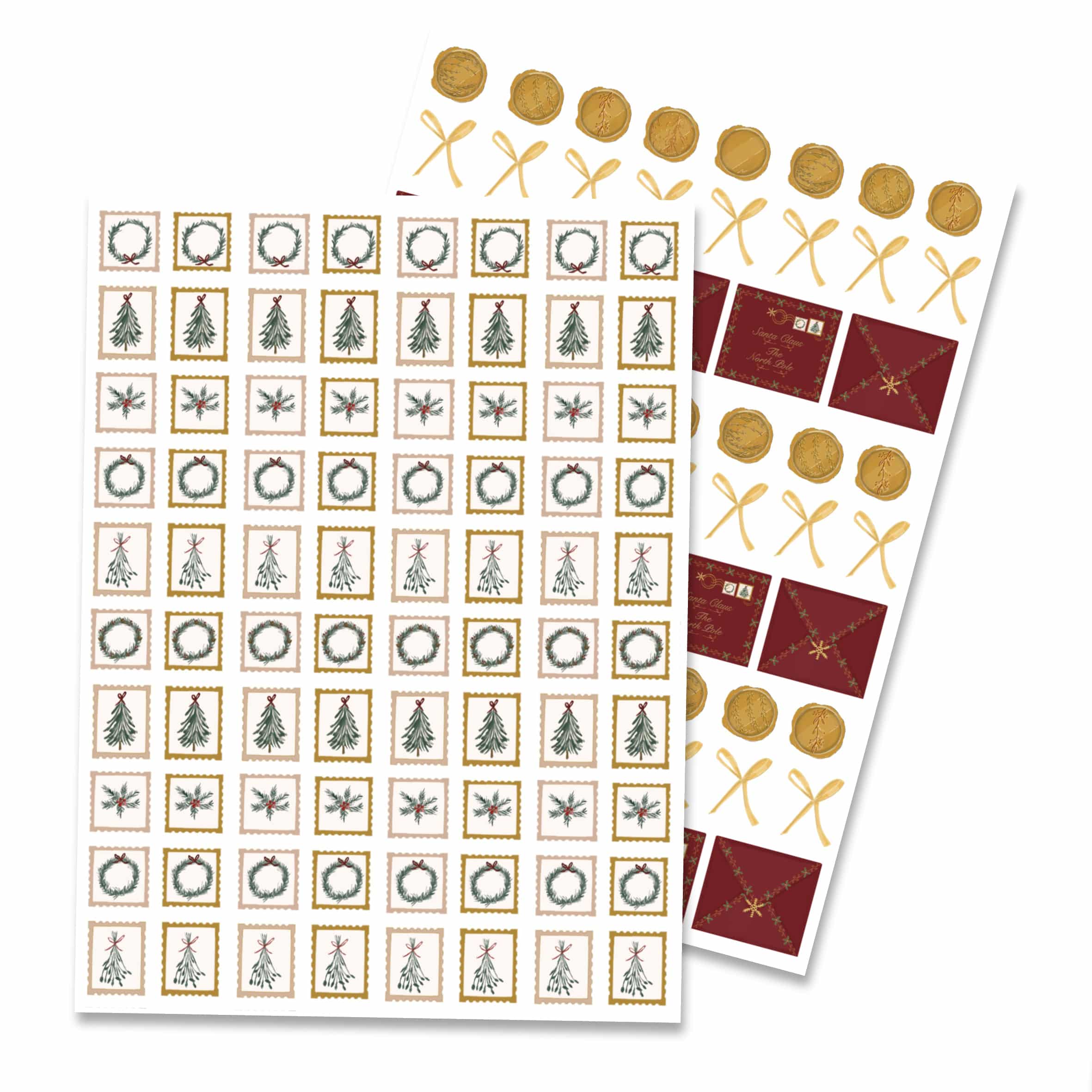 Due fogli di sticker ispirati alle lettere a Babbo Natale: una miriade di francobolli e lettere di carta preziosa. Perfetti per dare un tocco raffinato e retrò alle nostre pagine natalizie.